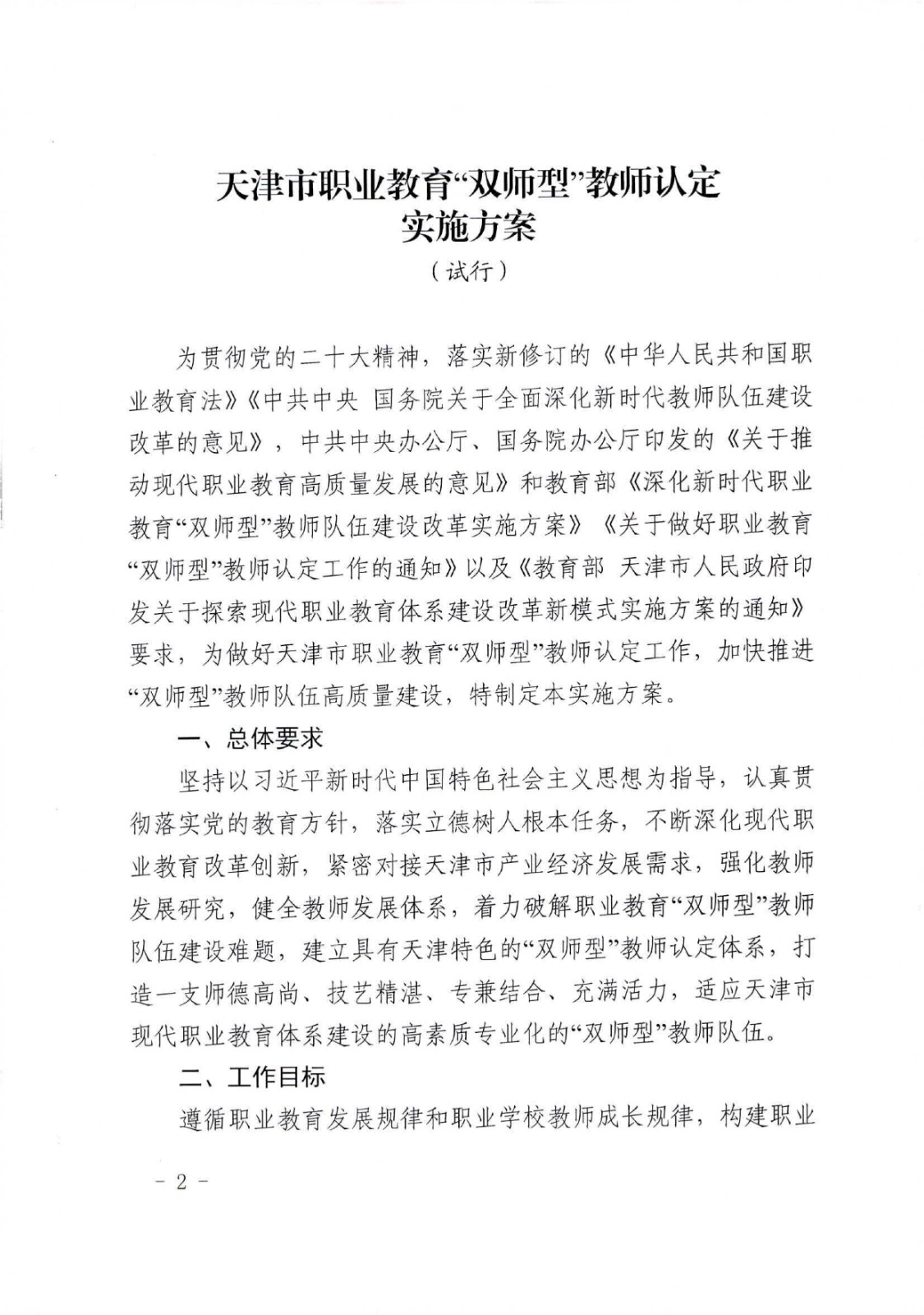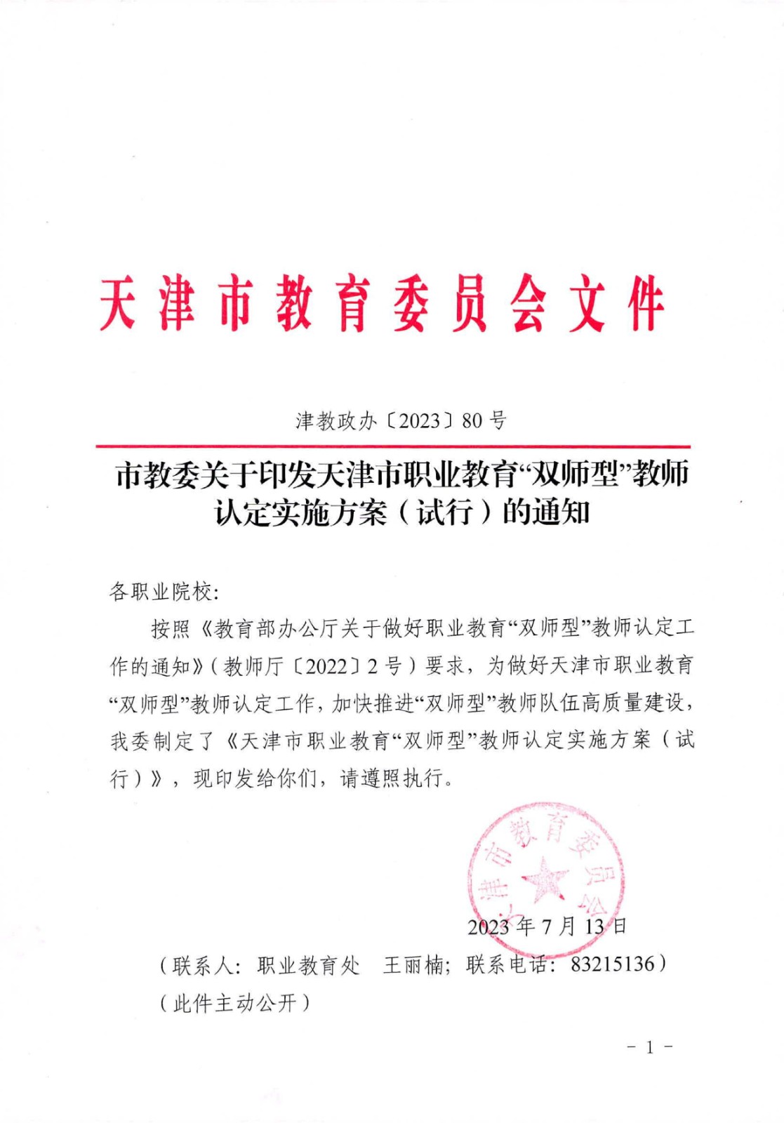 天津市教委关于印发天津市职业教育“双师型”教师认定实施方案