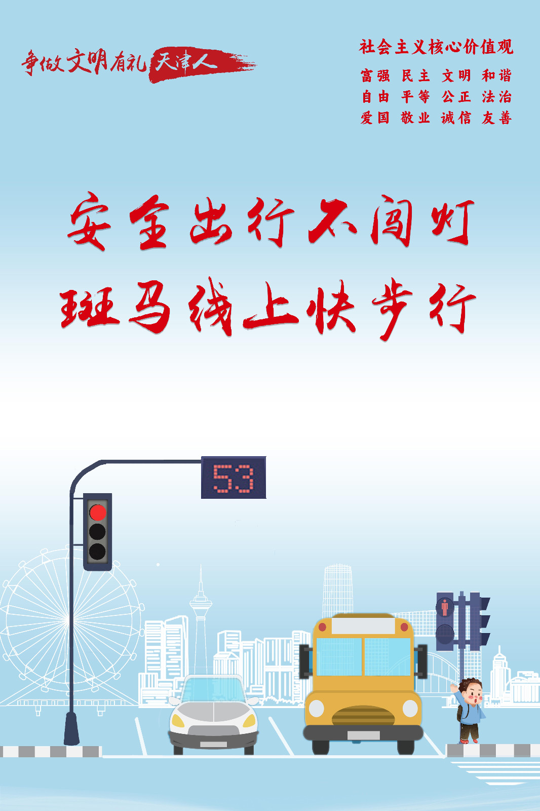 安全出行不闯灯 斑马线上快步行